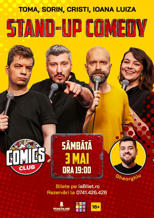 Bilete Stand-up cu Cristi, Toma, Sorin și Ioana Luiza la ComicsClub! - 3 mai, ora 19:00 - Comics Club