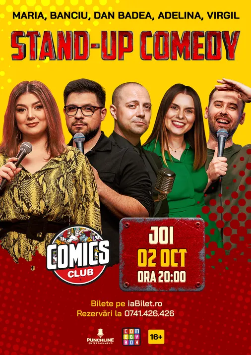 Bilete Stand-up cu Maria,Dan Badea, Banciu, Adelina și Virgil la ComicsClub! - 2 oct, ora 20:00 - Comics Club